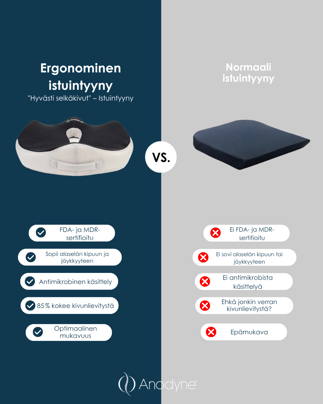 Ergonominen istuintyyny vs Normaali istuintyyny