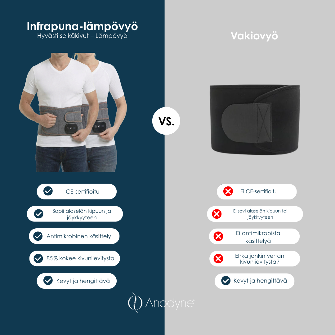 Infrapuna-lämmitysvyö vs. normaali tukivyö